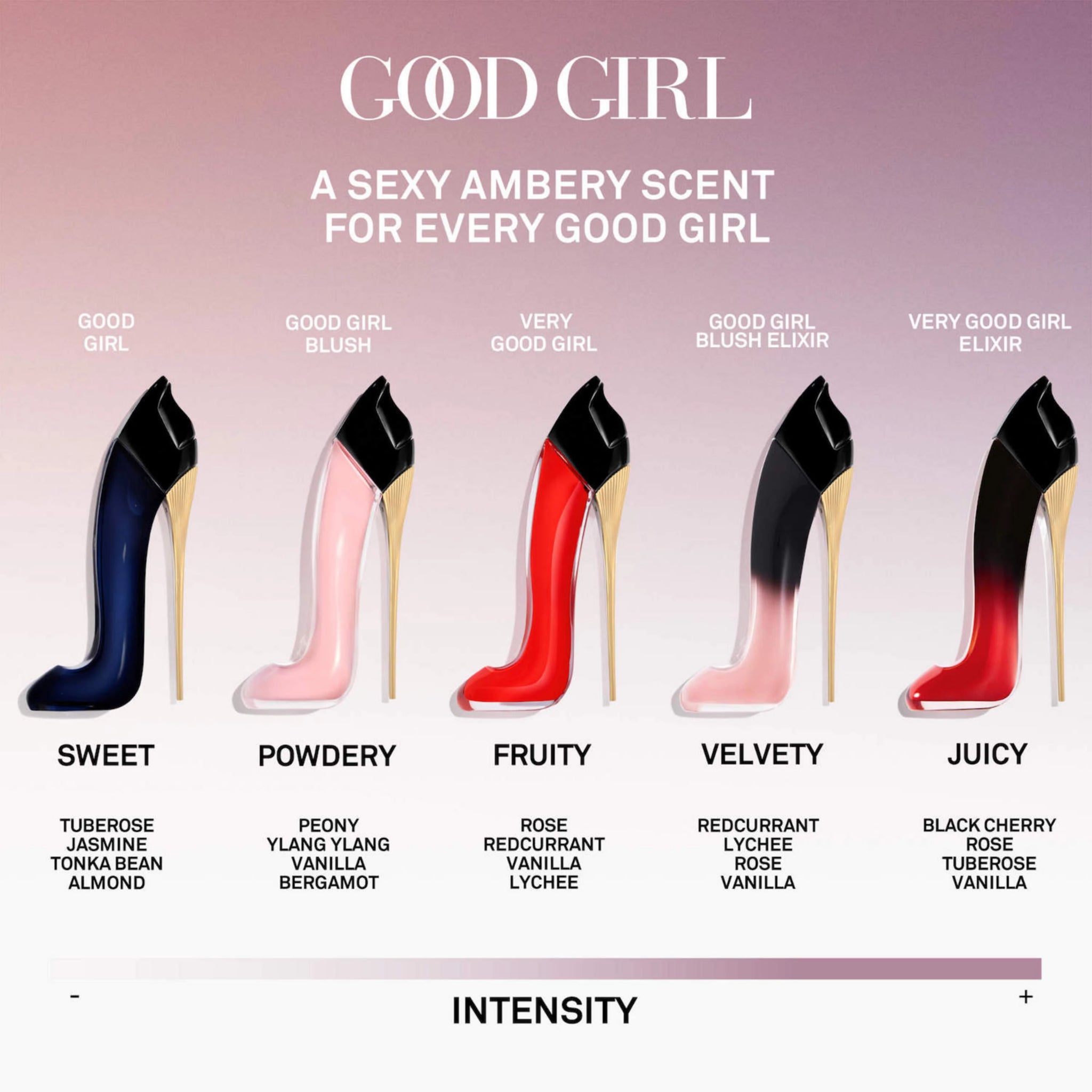Descripción de la fragancia: Una explosión floral fresca y femenina, esta radiante reinterpretación de la icónica fragancia Good Girl revela la naturaleza multifacética de la mujer moderna con una doble dosis de vainilla sensual y exótico ylang-ylang.
